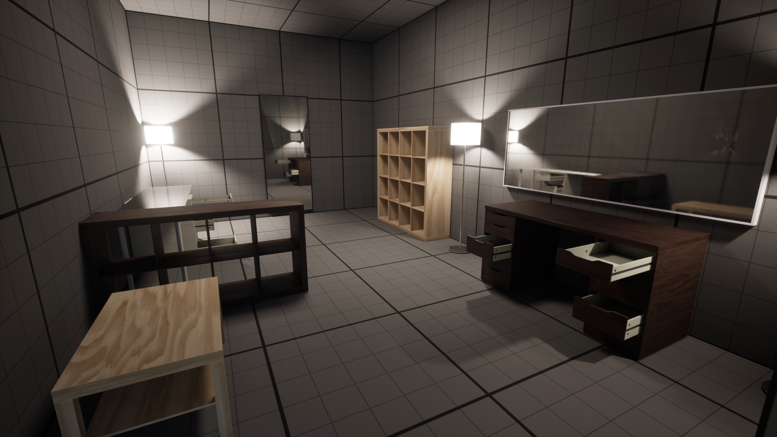 - Modular Blueprints: Includes Blueprints for the desk, desk legs, drawers, cube shelves, lamp, and mirror, all with Construction Scripts for in-editor customization.